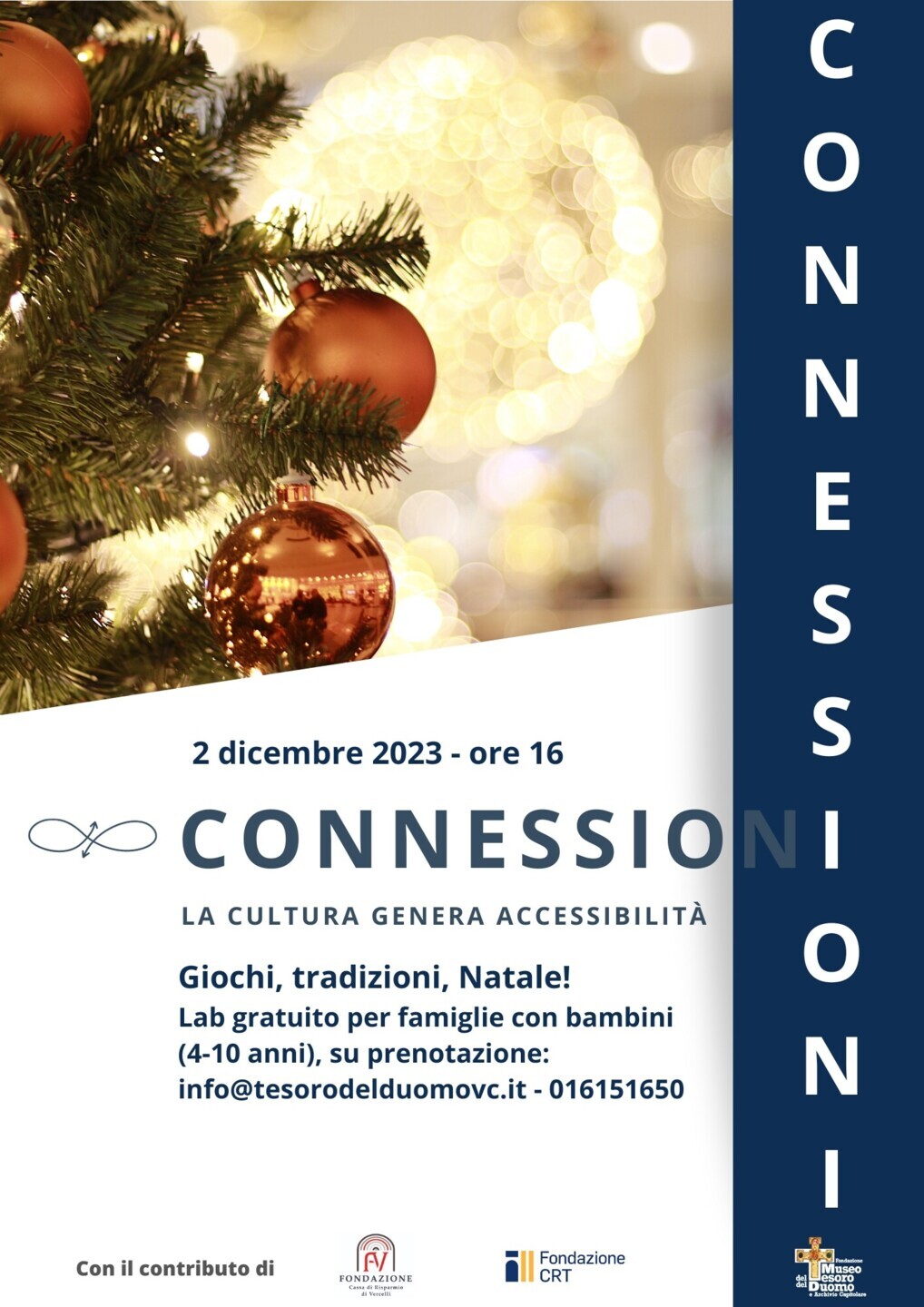 Il laboratorio, dedicato a famiglie con bambini tra i 4 e i 12 anni, è gratuito grazie al supporto di Fondazione CRV, Fondazione CRT e ai fondi 8x1000 della CEI. I giochi del pomeriggio si legano infatti al progetto Connessioni. La cultura genera accessibilità.