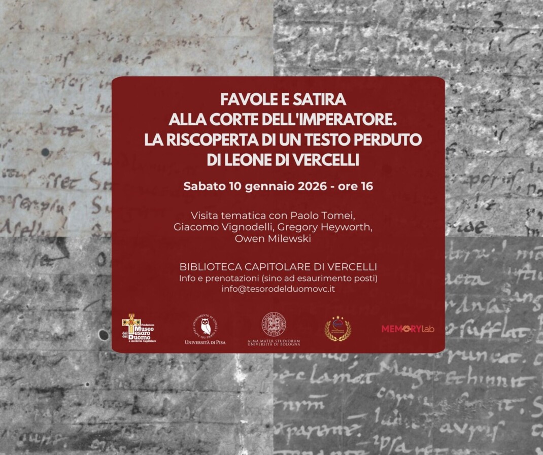 Sabato 10 gennaio 2026 alle ore 16.00 saranno ospiti della Fondazione Paolo Tomei, Giacomo Vignodelli, Gregory Heyworth e Owen Milweski. Il gruppo di ricerca, impegnato ormai da anni in analisi non invasive e studi approfonditi presso la Capitolare, racconterà al pubblico le nuove scoperte e sarà condotta una sessione di analisi multispettrale dal vivo. Oggetto dello studio è il Metrum Leonis, documento risalente ai primi anni dell’Anno Mille, testo chiave per lo storia dell’impero di Ottone III (996-1002). Il suo autore, Leone di Vercelli, fu uno dei più importanti intellettuali dell’Europa alle soglie del Mille, tra gli ideatori e promotori del progetto di Renovatio imperii Romanorum.