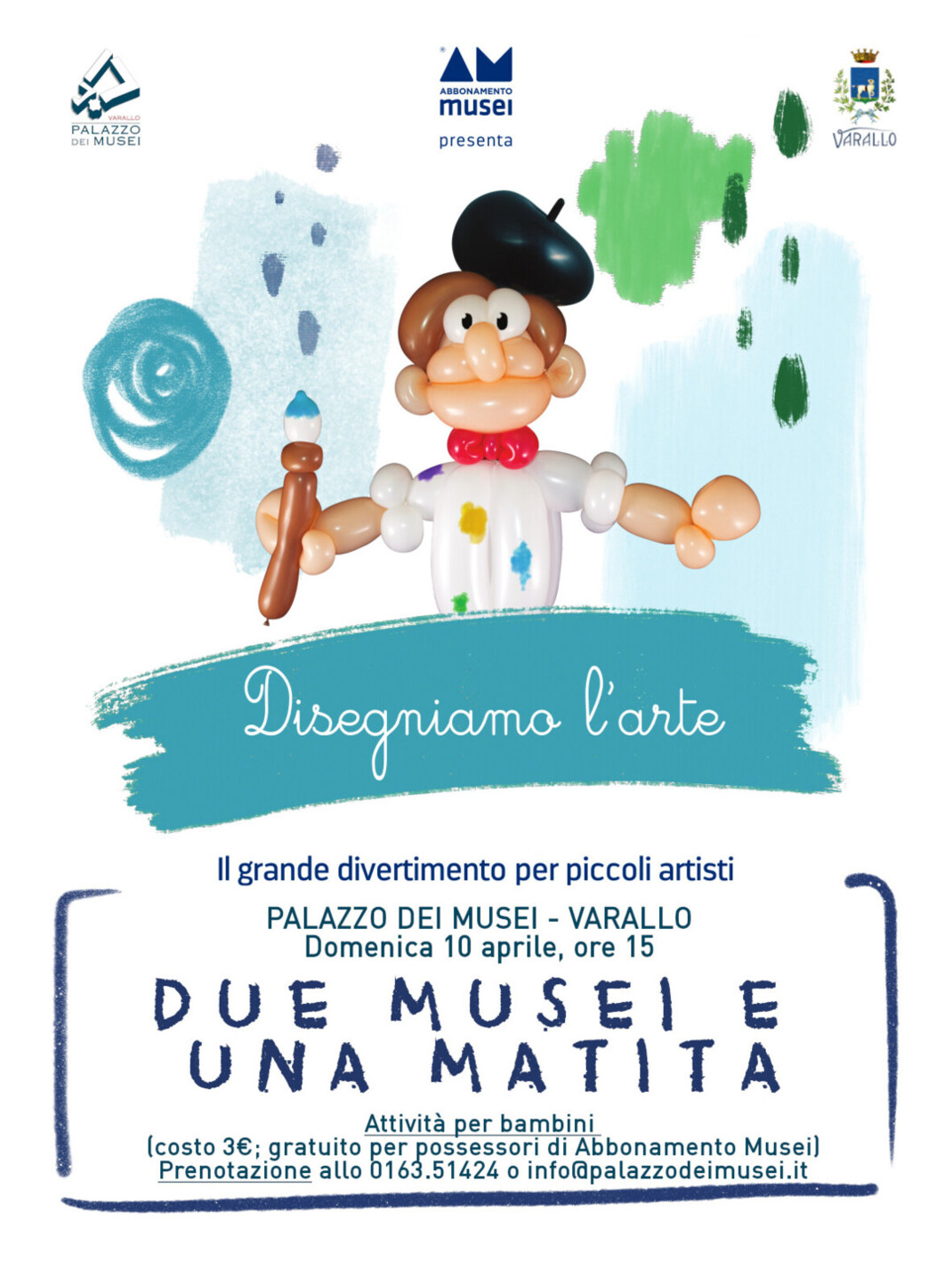 L’appuntamento è per domenica 10 aprile alle ore 15. Il costo a bambino è di € 3 (gratuito per i possessori di Abbonamento Musei Piemonte Valle d’Aosta),con prenotazione consigliata (0163 51424; info@palazzodeimusei.it). Per gli accompagnatori sarà inoltre possibile visitare le collezioni a una tariffa ridotta.